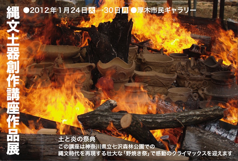【予告】縄文土器創作講座作品展 【無事終了致しました。多数のご来場ありがとうございました。】以下の通り『縄文土器創作講座作品展』を行いますのでお報せ致します。【クリックで拡大】・日程:2012 年 1 月 24 日(火)〜 1 月 30 日(月)・場所:厚木市民ギャラリー[主催者メッセージ]縄文土器を師として、自分の手で土を練り土器を作って、縄文時代宛らに野焼焼成した作品百点です。七沢森林公園で、縄文の美と心の技を求め、土と炎の競演に没頭中。是非御高覧下さいませ。 ※ 七沢工房の陶芸教室はコロナ禍の影響により現在休止させて頂いております。再開時期は未定なのでお答えできませんがその他お問い合せがありましたら連絡先のページをご覧ください。 コメント