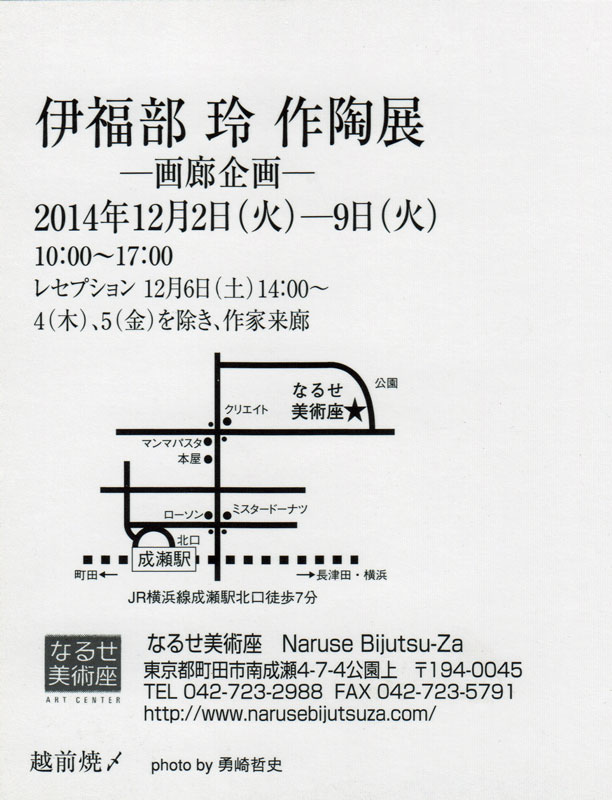 2014年12月2日(火)から12月9日(火)までの八日間、なるせ美術座にて個展を行いますのでお報せ致します。