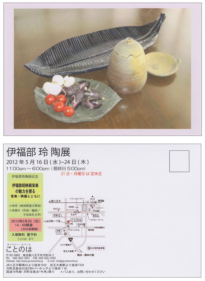 また、5 月 20 日には伊福部玲陶展記念として『伊福部昭映画音楽の魅力を探る - 音楽・映像とともに』と題したイベントを予定しております。入場無料ですが予約が必要となりますので詳しくは上記 "ギャラリー・スペースことのは" のホームページにてご確認下さいませ。