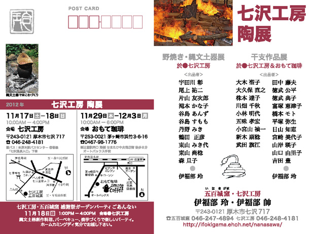 また、5 月 20 日には伊福部玲陶展記念として『伊福部昭映画音楽の魅力を探る - 音楽・映像とともに』と題したイベントを予定しております。入場無料ですが予約が必要となりますので詳しくは上記 "ギャラリー・スペースことのは" のホームページにてご確認下さいませ。※ 七沢工房の陶芸教室はコロナ禍の影響により現在休止させて頂いております。再開時期は未定なのでお答えできませんがその他お問い合せがありましたら連絡先のページをご覧ください。