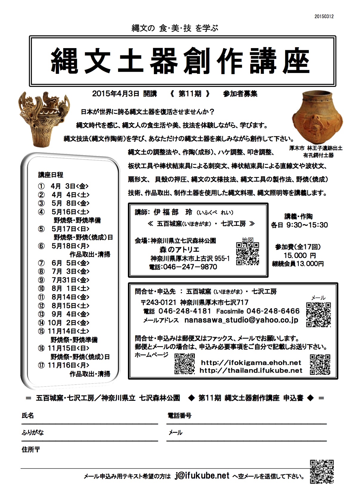 2015年4月3日から縄文土器創作講座を開講するにあたり、受講生の募集を行います。