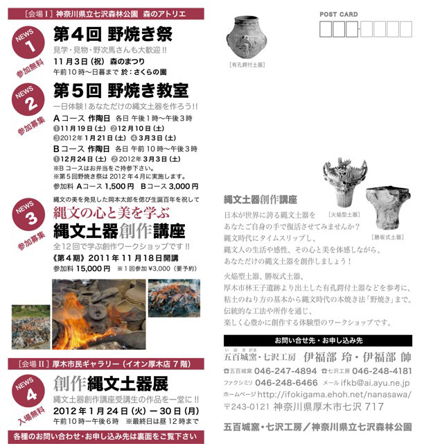 縄文土器創作講座・第五期(PDF 約1.7MB)※ 七沢工房の陶芸教室はコロナ禍の影響により現在休止させて頂いております。再開時期は未定なのでお答えできませんがその他お問い合せがありましたら連絡先のページをご覧ください。