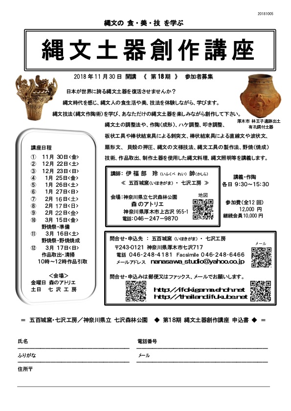 現在、2018年11月30日から開講している第18期・縄文土器創作講座の受講生を募集しています。