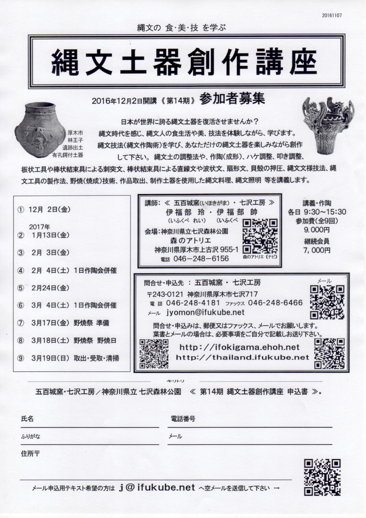 2016年12月2日から縄文土器創作講座を開講するにあたり、受講生の募集を行っています。